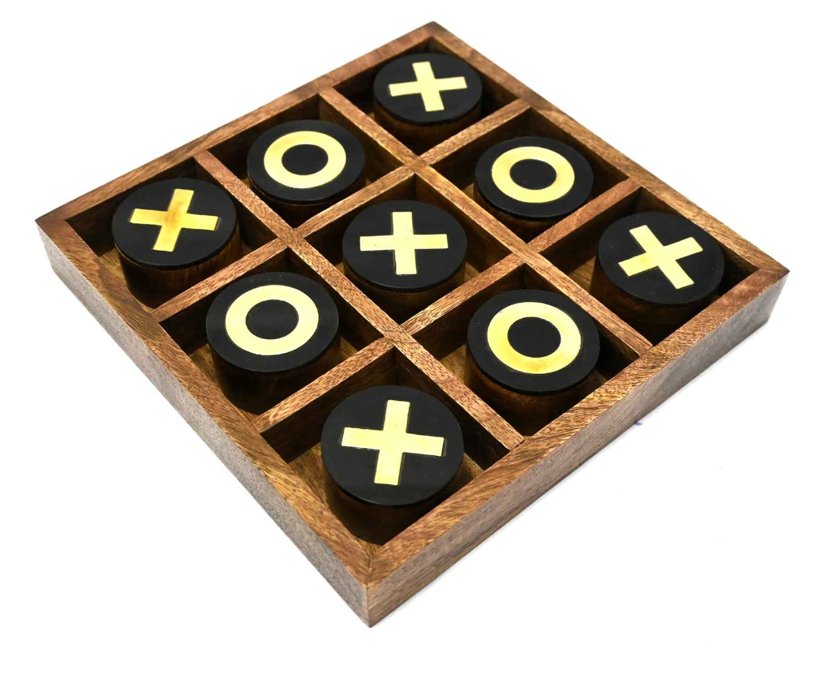 איקס עיגול מעץ עם מטבעות שיש שחורות של איקס עיגול