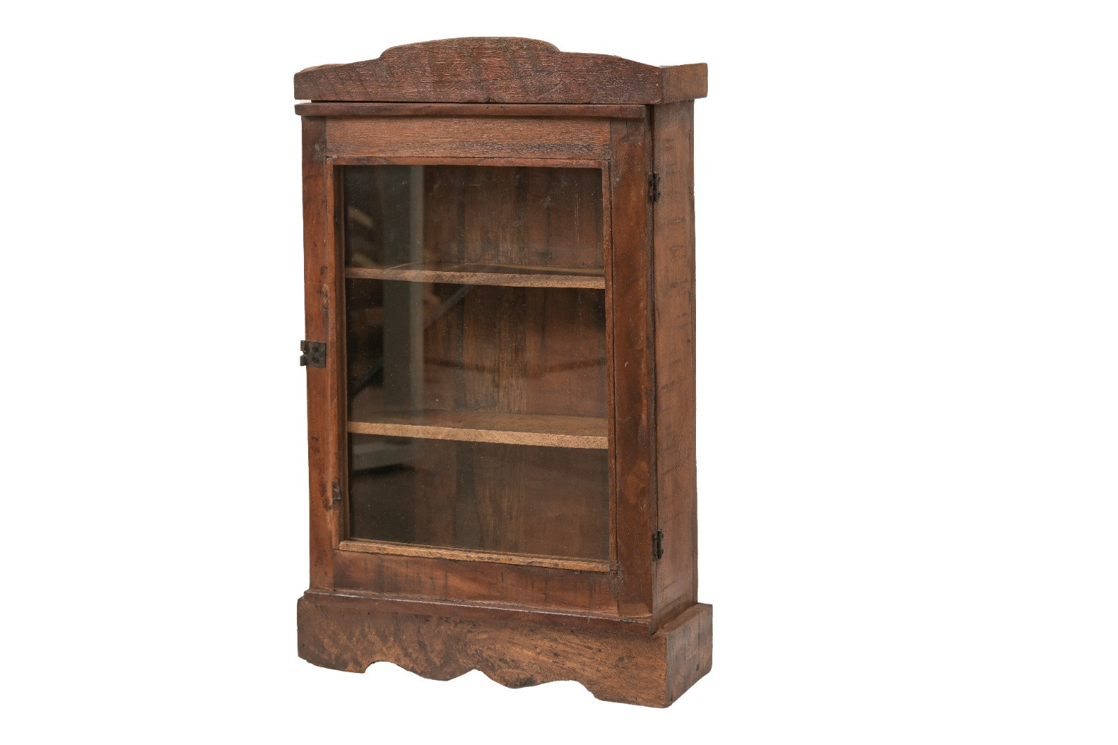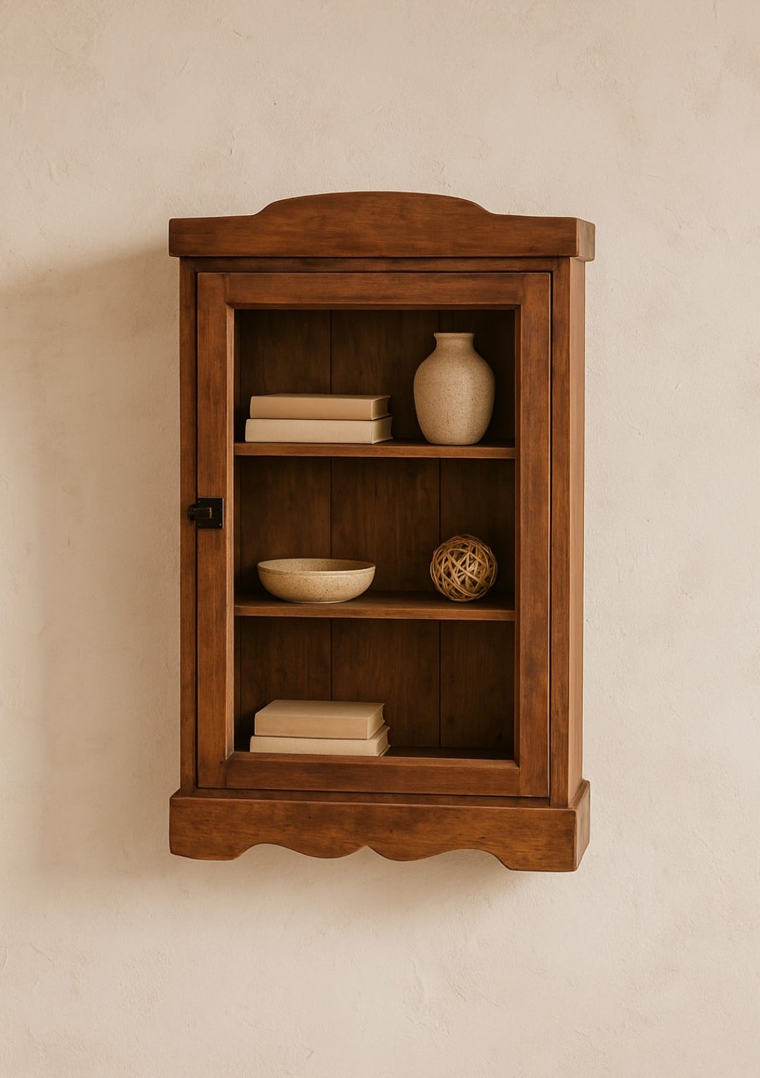 ארונית עץ בעלת שלושה שלבי מידוף עם דלת זכוכית. מתאימה מאוד לכניסה לבית או לחדר עבודה או חדר שינה.