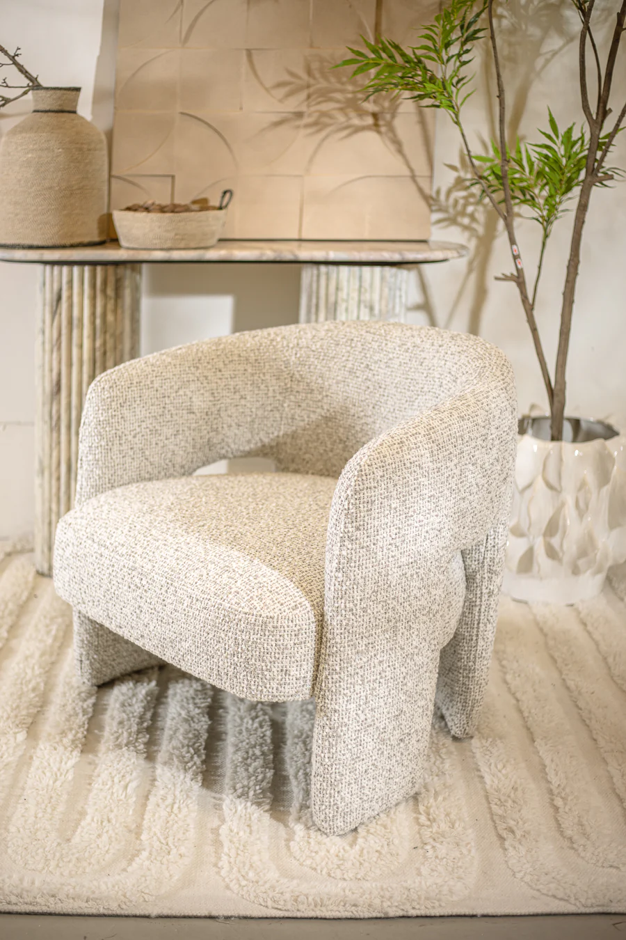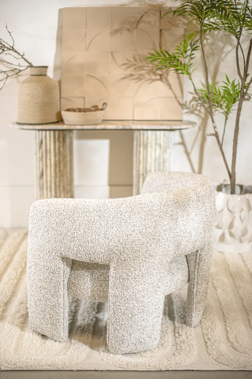 כורסאת אירוח גרטה בגוון בהיר. כורסא בעיצוב נורדי, מרופדת בד אריג המשווה לה נראות עשירה. רהיט מדויק לאיבזור חלל עם כורסה מלאת אופי.
