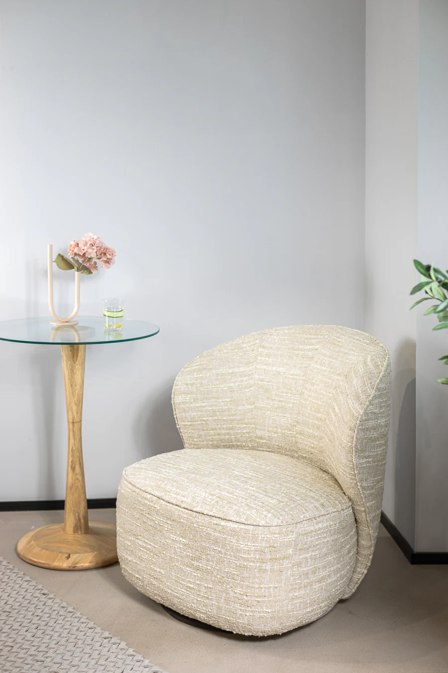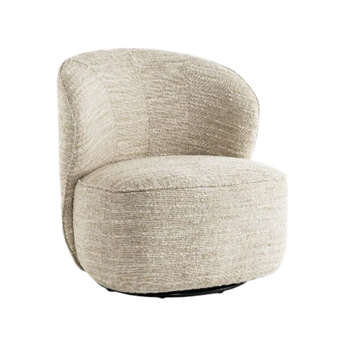כורסת ריקו מסתובבת בגוון בהיר. כורסת אירוח מרופדת בד אריג ייחודי ומלא אלגנט.