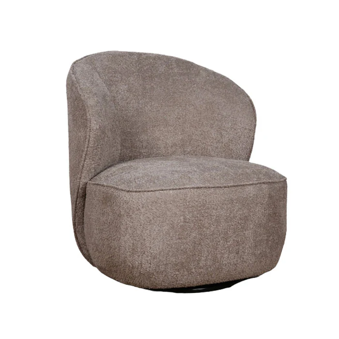 כורסת ריקו מסתובבת בגוון חום. כורסת אירוח מעוצבת קו רך, הניצבת על בסיס עץ מנימליסטי.