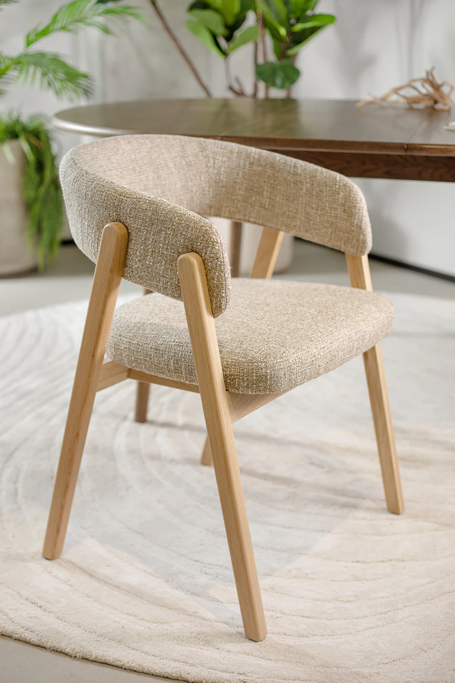 כיסא אלסנדרו בגוון בהיר. כיסא אירוח מעוצב משענת ומושב מרופדים בקו רטרו עכשווי.