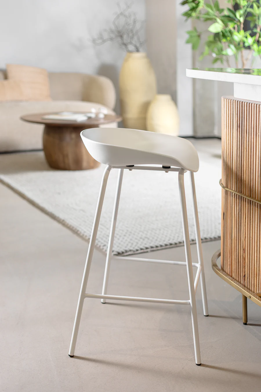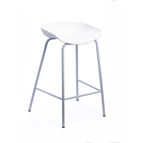 כיסא בר רינו בצבע לבן. כיסא גבוה מעוצב one piece קולור בלוק העומד על רגלי מתכת בצבע זהה . כיסא ישיבה מושלם לאירוח מסביב דלפק, מרפסת הבית.