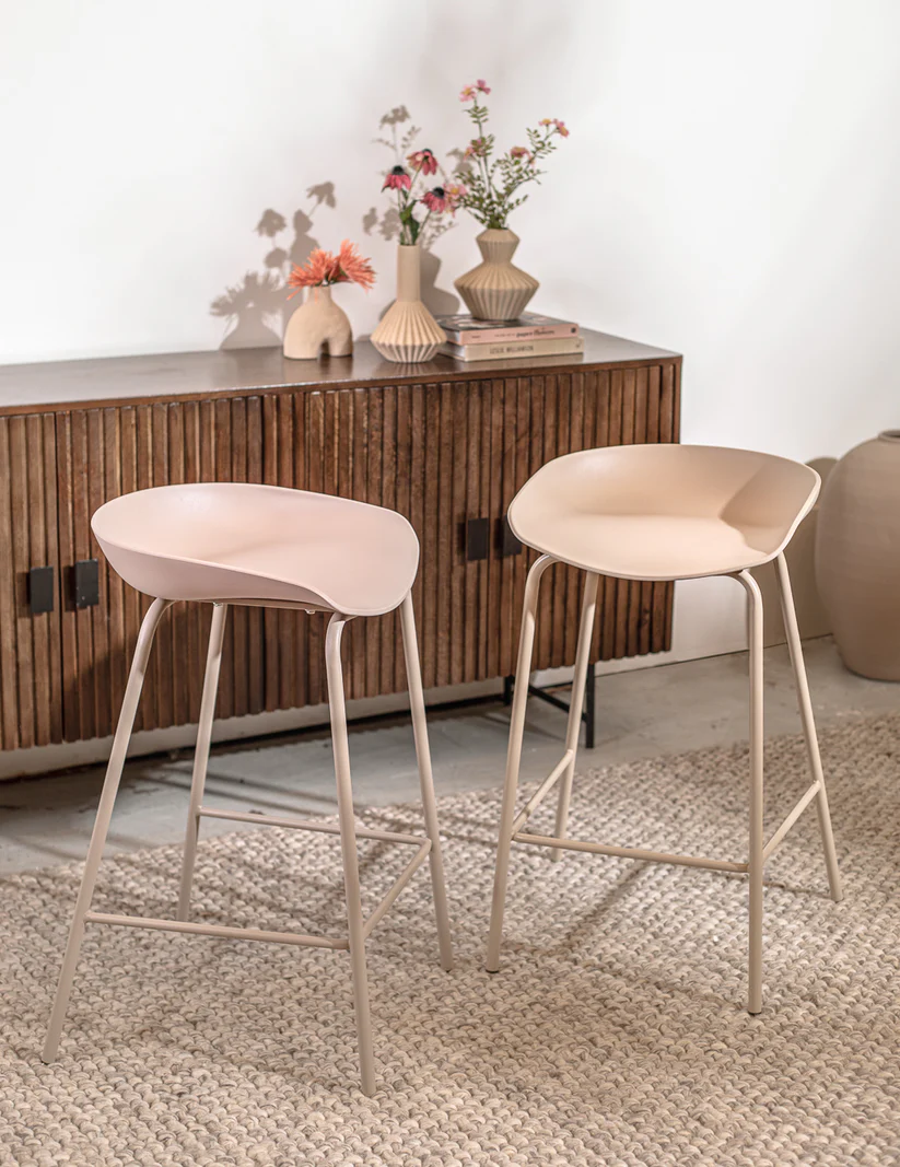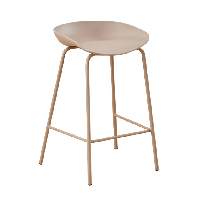 כיסא בר רינו בגוון קפוצ'ינו. כיסא גבוה מעוצב one piece קולור בלוק העומד על רגלי מתכת בצבע זהה .