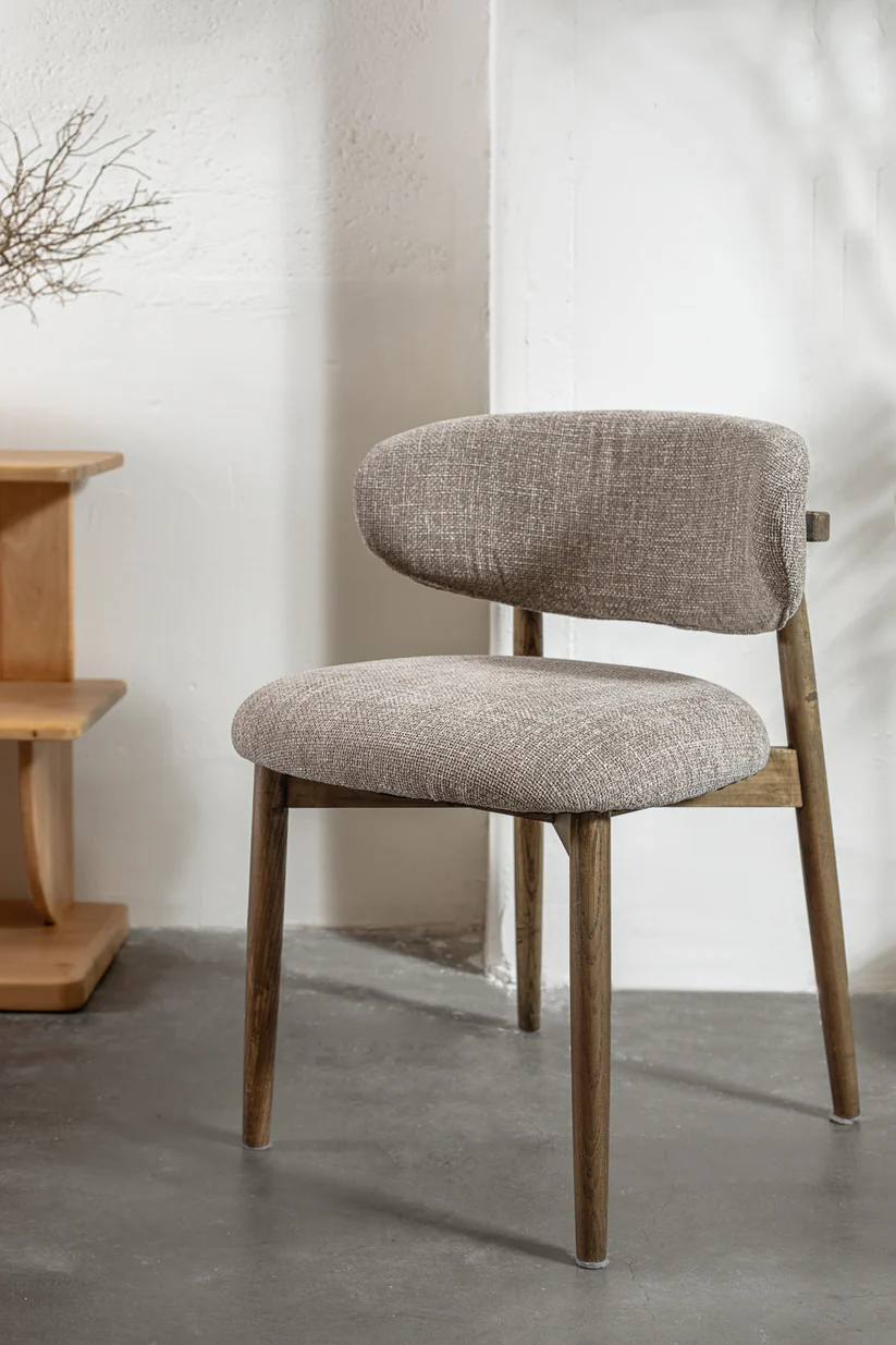 כיסא אירוח סטפאנו בגוון טבעי. כיסא פינת אוכל מעוצב משענת מעוגלת ונישא על רגלי עץ .