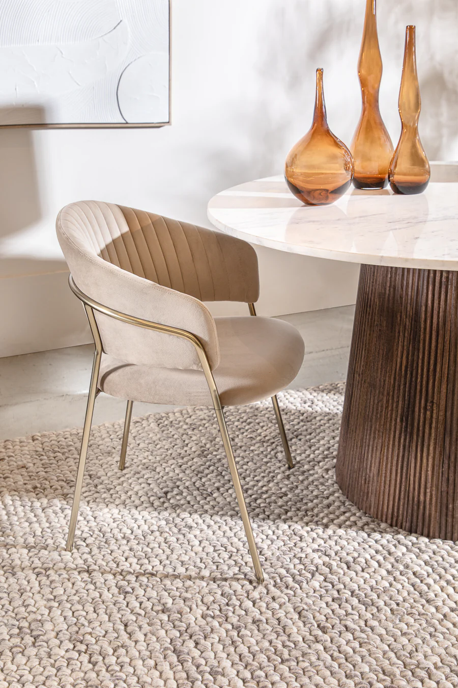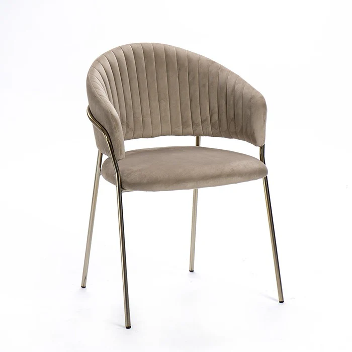 כיסא ישיבה סנדרה פרופיל עגול בגוון ניוד. כיסא מעוצב משענת גב ומושב מרופדים, הנישא על רגלי מתכת .