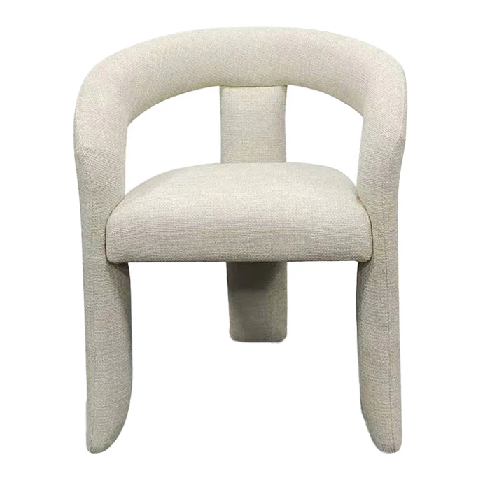 כיסא אירוח קריסטי בגוון בהיר. כיסא בעיצוב נורדי, מרופד בד אריג המשווה לו נראות עשירה.