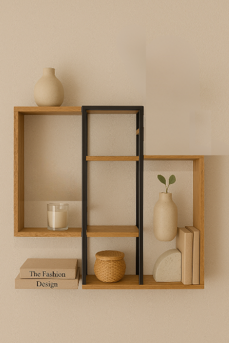 קומבינציית מדפי עץ מחוברים בסגנון מודרני עם הרבה סטייל שיקפיצו כל קיר בחדר שלכם.