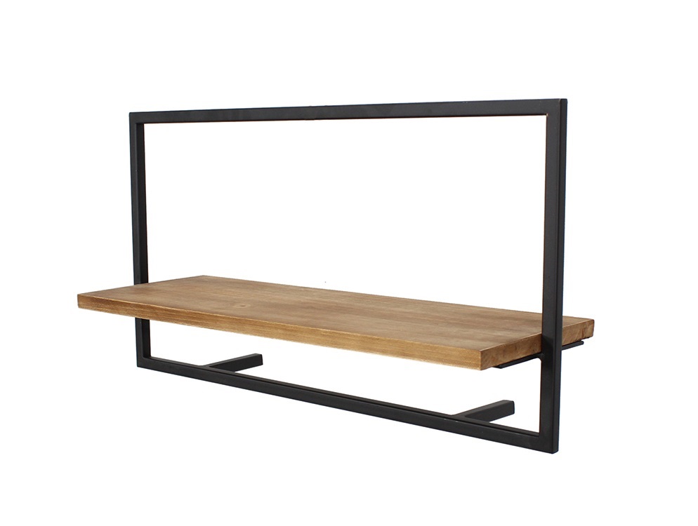 מדף עץ עם מסגרת שחורה. מוצר קלאסי, נוח לתלייה ומאוד פרקטי