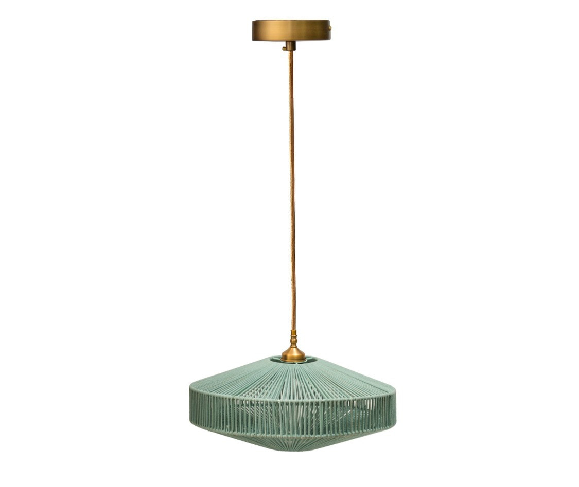מנורת מקרמה בצורת טרפז בצבע טורקיז.
