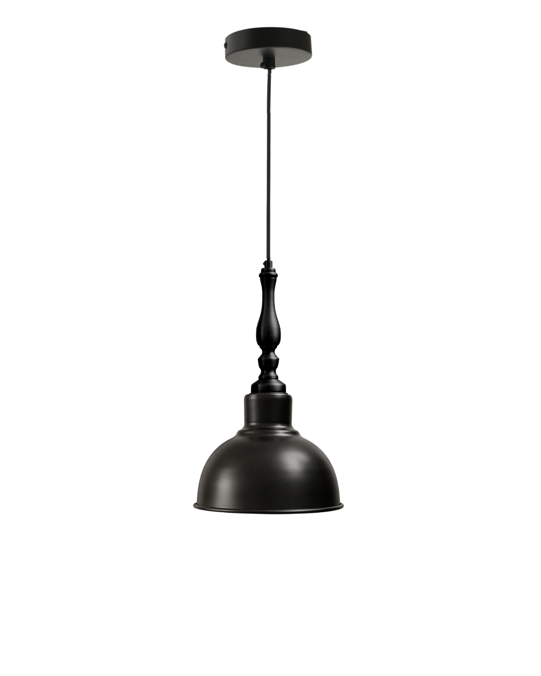 מגיעה מחושמלת עם כבל בד שחור וחובק שחור עם הברגה E27.