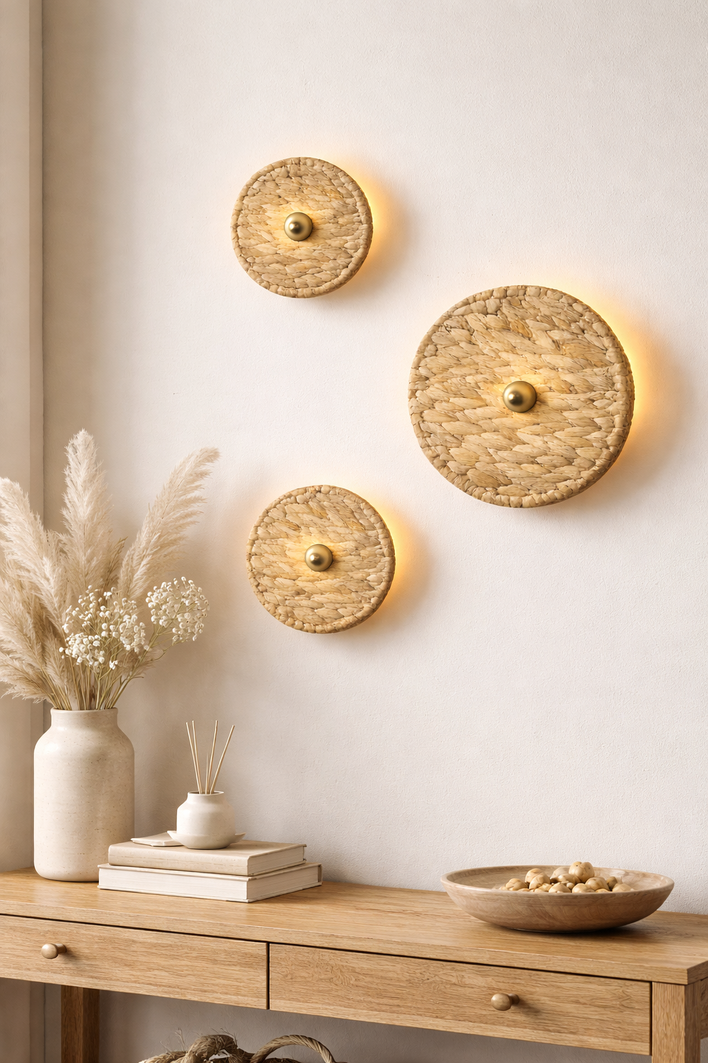 מנורת קיר קש, יכולה לשמש גם כמנורת תקרה צמודה.