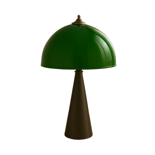 מנורה שולחנית מתכת מדגם 886 עם זכוכית ירוקה מדגם 321.