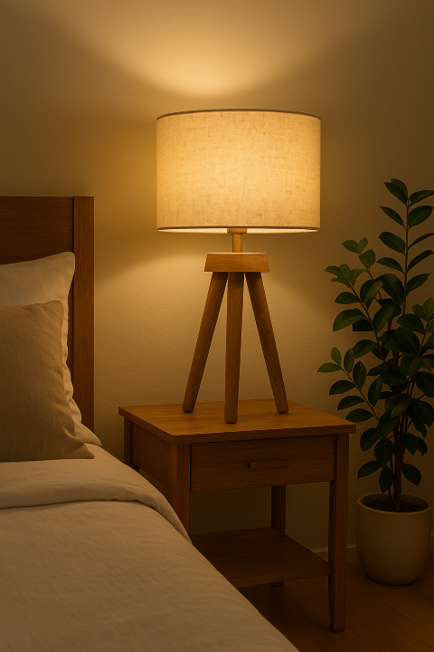 מנורה שולחנית עץ עם אהיל בד לבן מדגם בלייר.