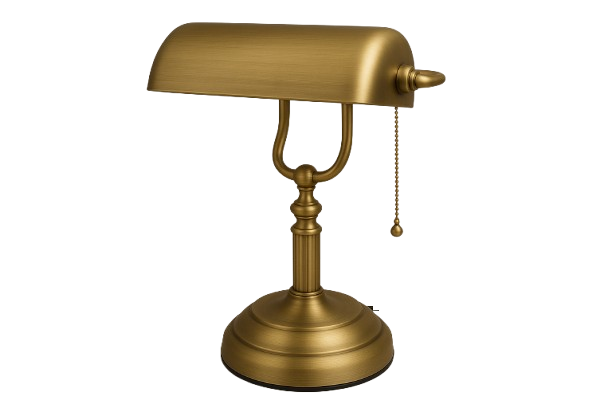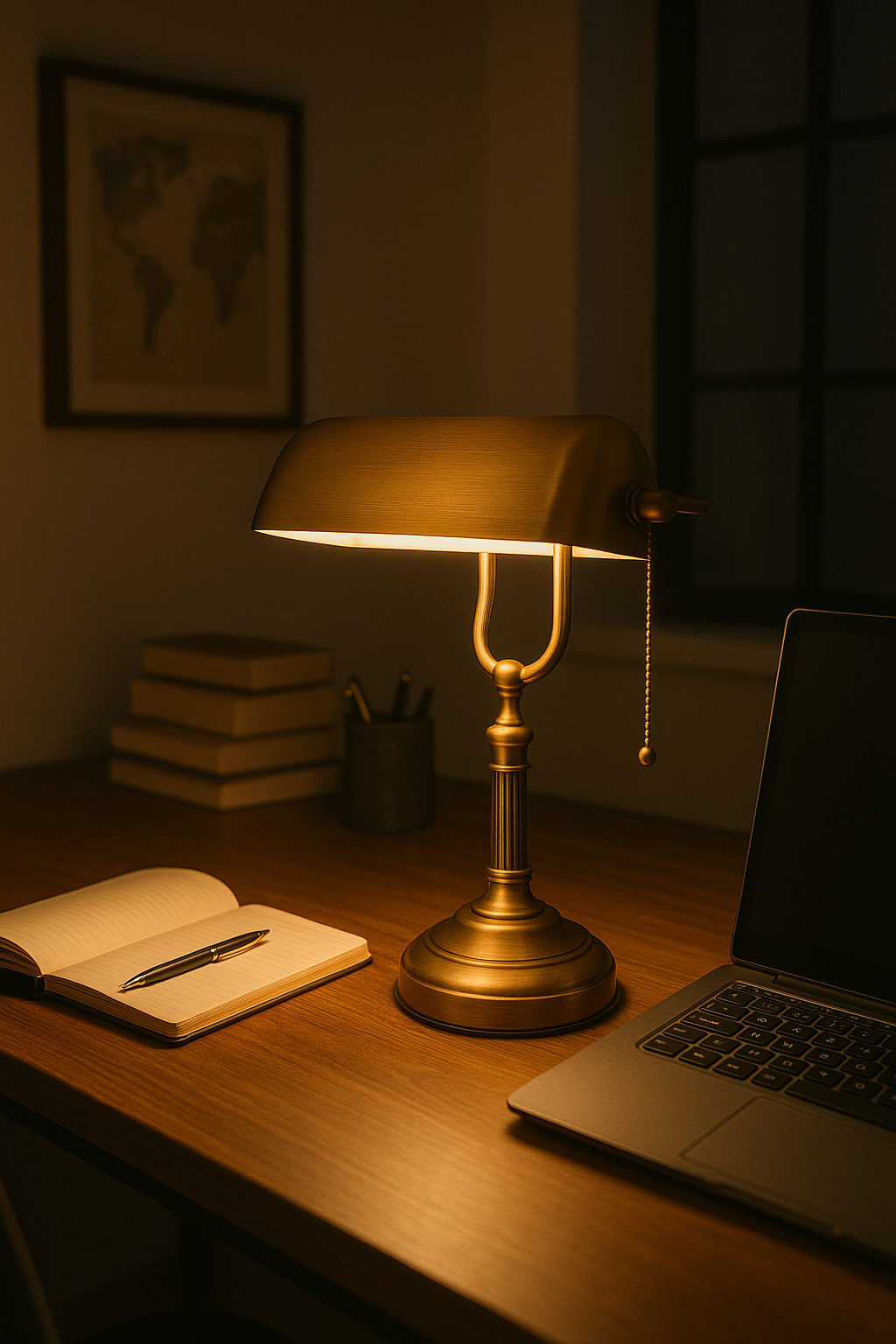 מנורה שולחנית בנקאי נחושת עם כובע נחושת.