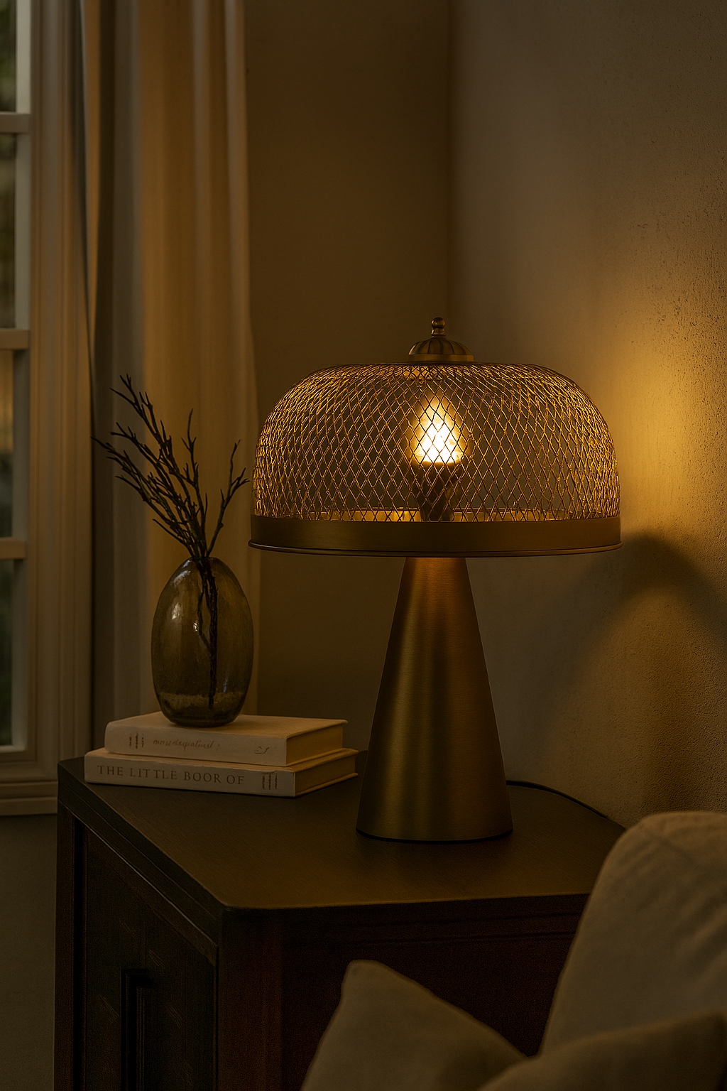 מנורה שולחנית מתכת מדגם 2558 עם אהיל מתכת מדגם 413.