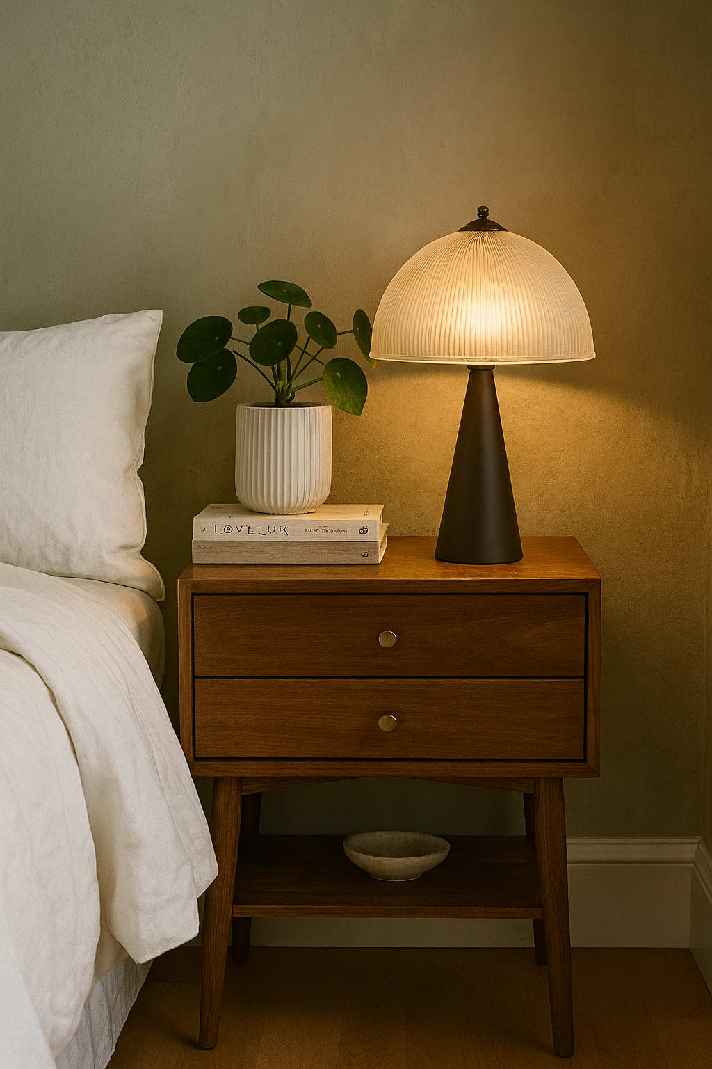 מנורה שולחנית מתכת מדגם 886 עם זכוכית מדגם 800.
