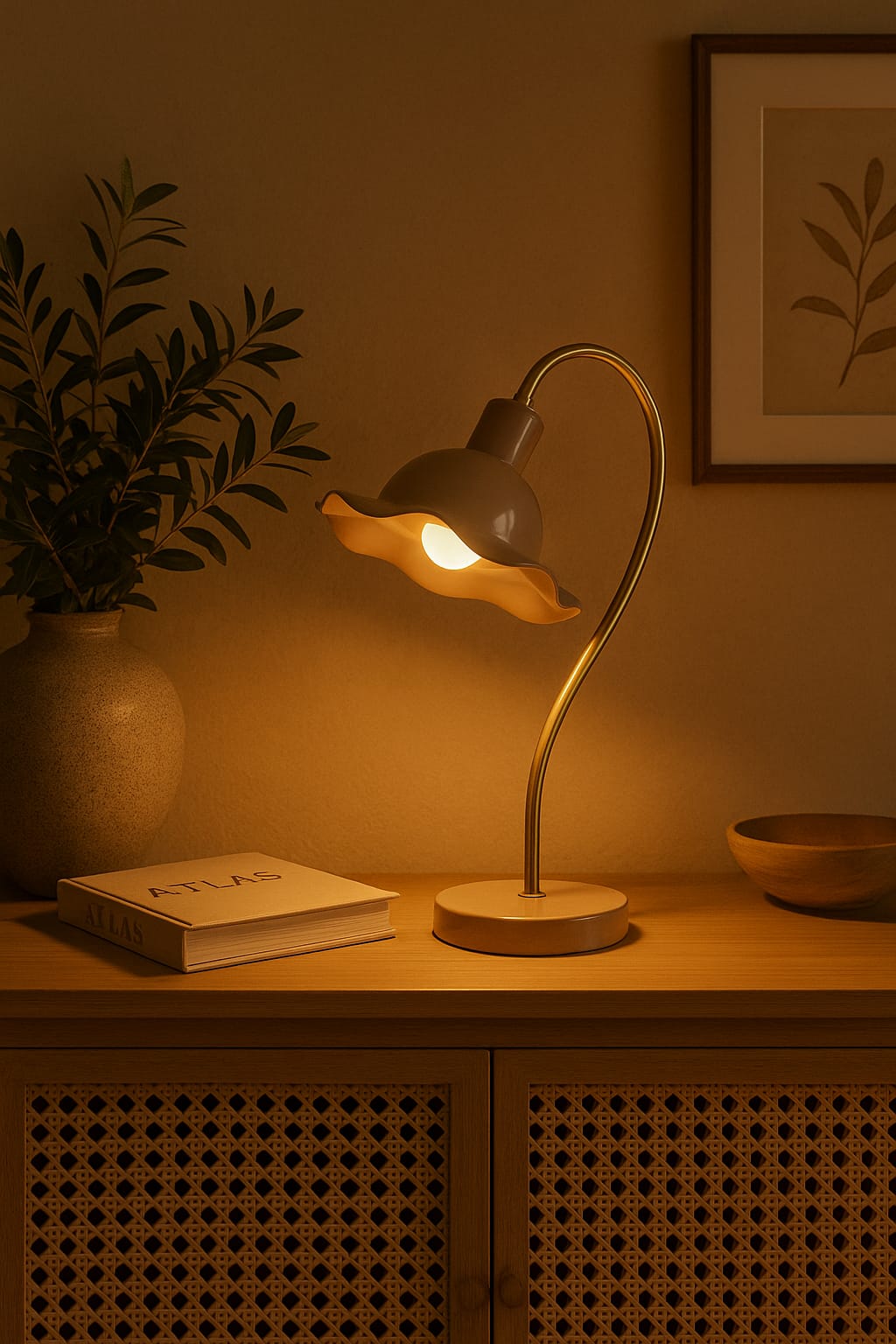 מנורה שולחנית קרם עם נחושת מדגם 884.