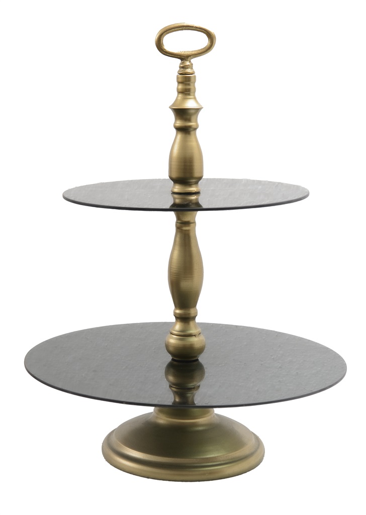 מעמד הגשה כפול זכוכית עגולה ונחושת