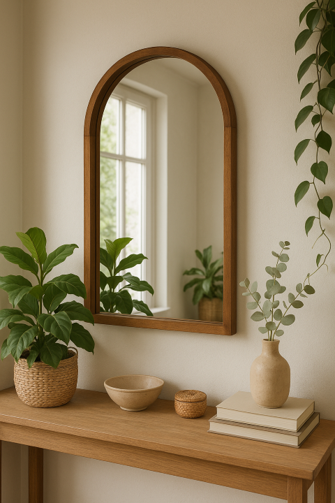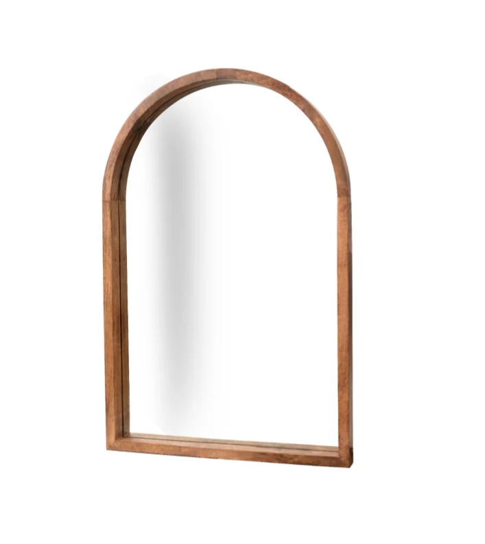 מראת עץ בצורת קשת. מוצר נוח לתלייה.
