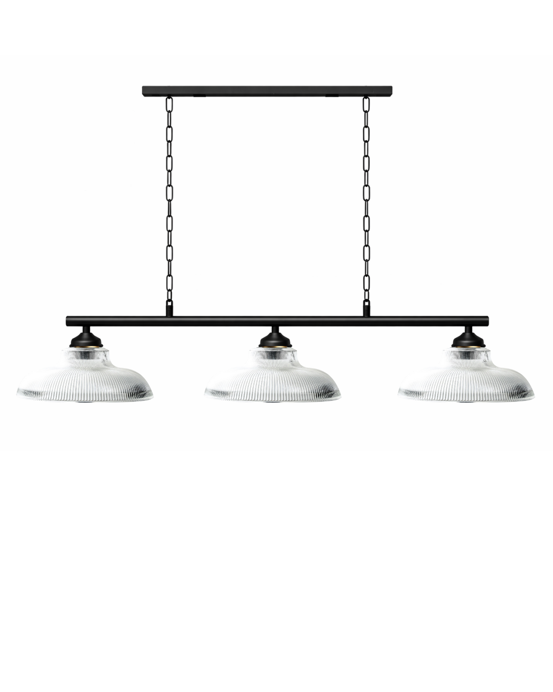 מתלה שלישייה שחור באורך מטר, עם שרשרת שחורה מחושמל עם הברגה E27.