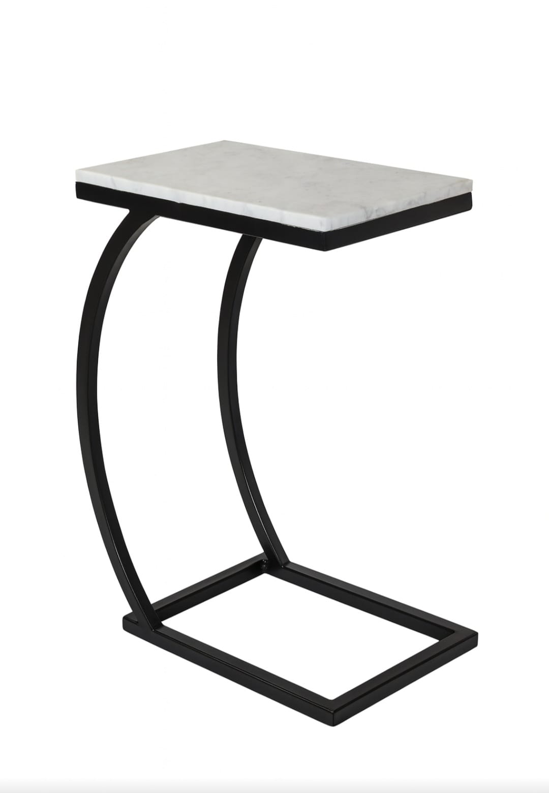 נשכן- שולחן פינוק משיש לבן על רגל שחורה. מוצר מומלץ לתוסף לסלון.