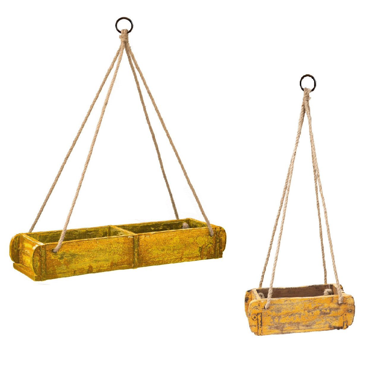 סט אדניות בצבע צהוב אותנטי מגיע תלוי על חבל. מוצר מומלץ לגינה ציבעונית.