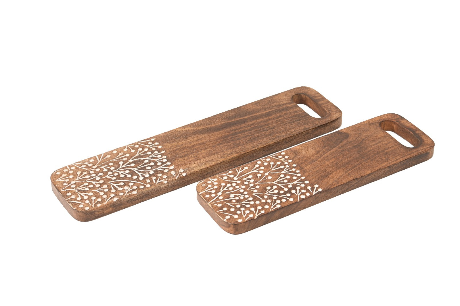סט זוגי בוצרים מעץ מלבניים עם איורים לבנים.