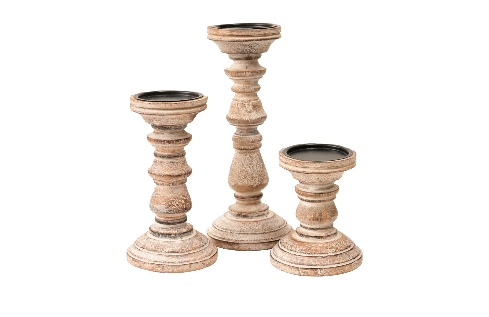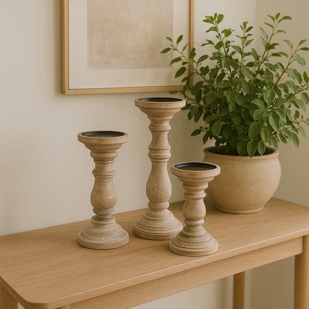 סט שלישיה פמוטי עץ בהירים