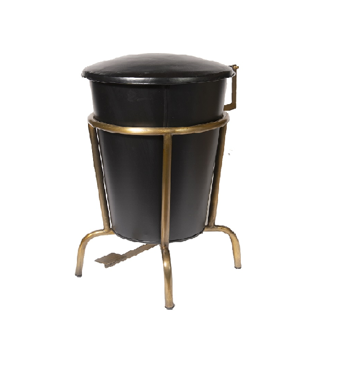 פח דקורטיבי בצבע שחור עם רגל נחושת. מתאים למטבח או חדר שינה.