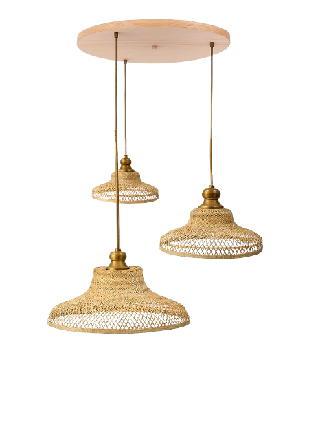 פלטת עץ עגולה 45 ס"מ מחושמל עם שלושה חובקים עם כבלי בד נחושת עם שלושה כובעי קש מדגם 577-2045-2043.
