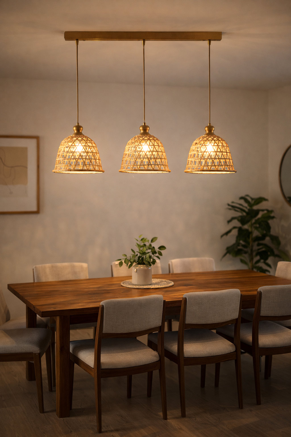 פס מטר נחושת עם שלושה חובקי נחושת עם כבל בד נחושת. מחושמלים עם הברגה לנורות E27.