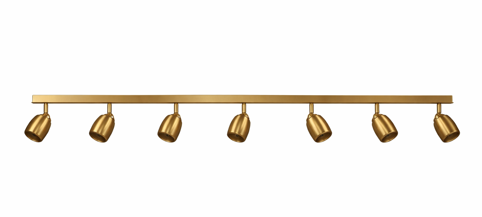 פס נחושת מחושמל עם 7 חובקים רטרו מתכוננים, מתאימים לנורות בלבד (בלי אפשרות להוסיף זכוכיות).