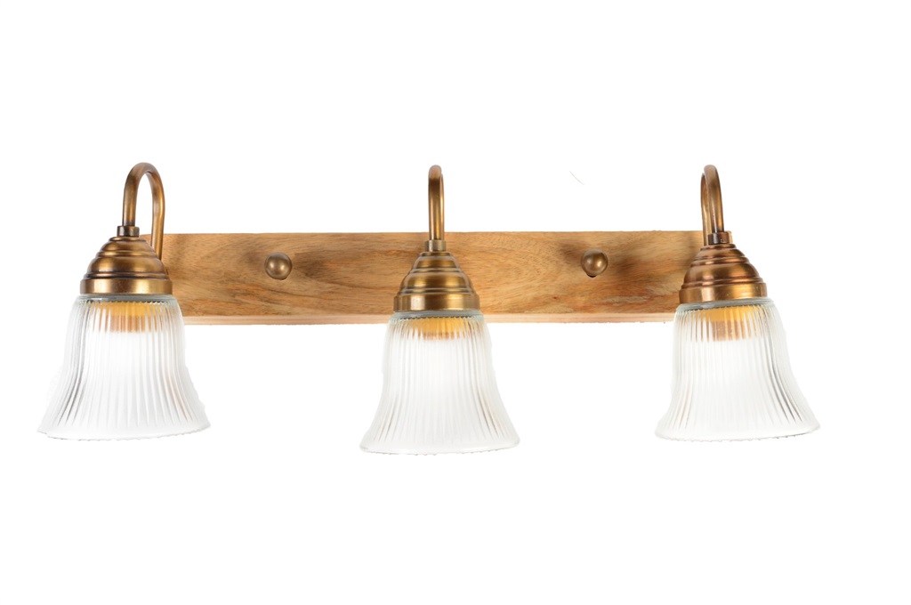פס עץ שלישיה זרועות נחושת עם שלושה זכוכיות 707.