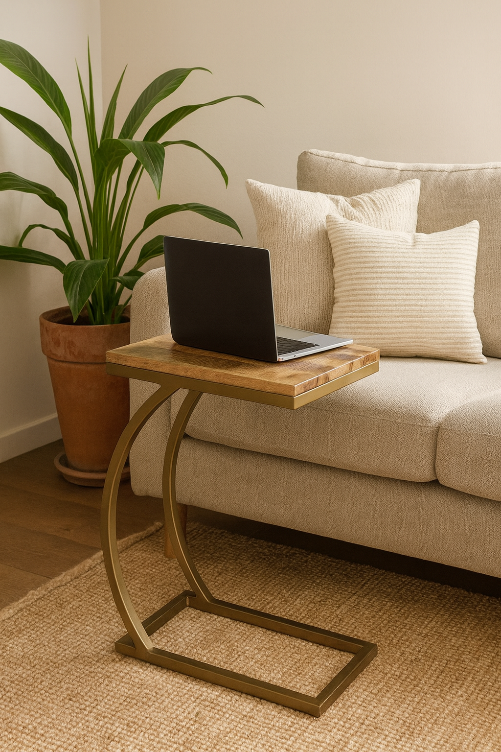 נשכן- שולחן פינוק מעץ מנגו מלא על רגל נחושת. מוצר מומלץ לתוסף לסלון.