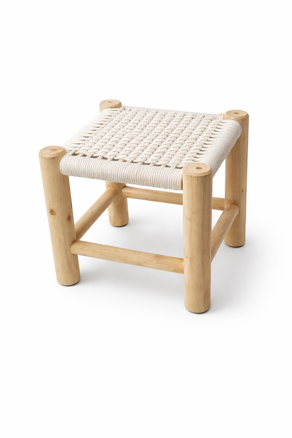 שרפרף עץ סרוג בד לבן, עבודת יד. מוצר מומלץ מאוד.