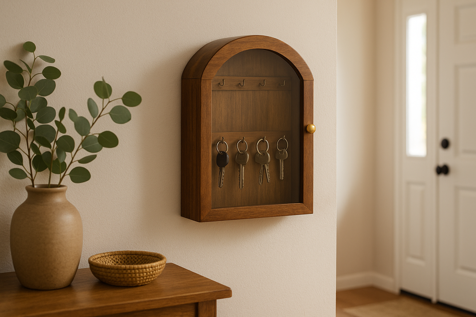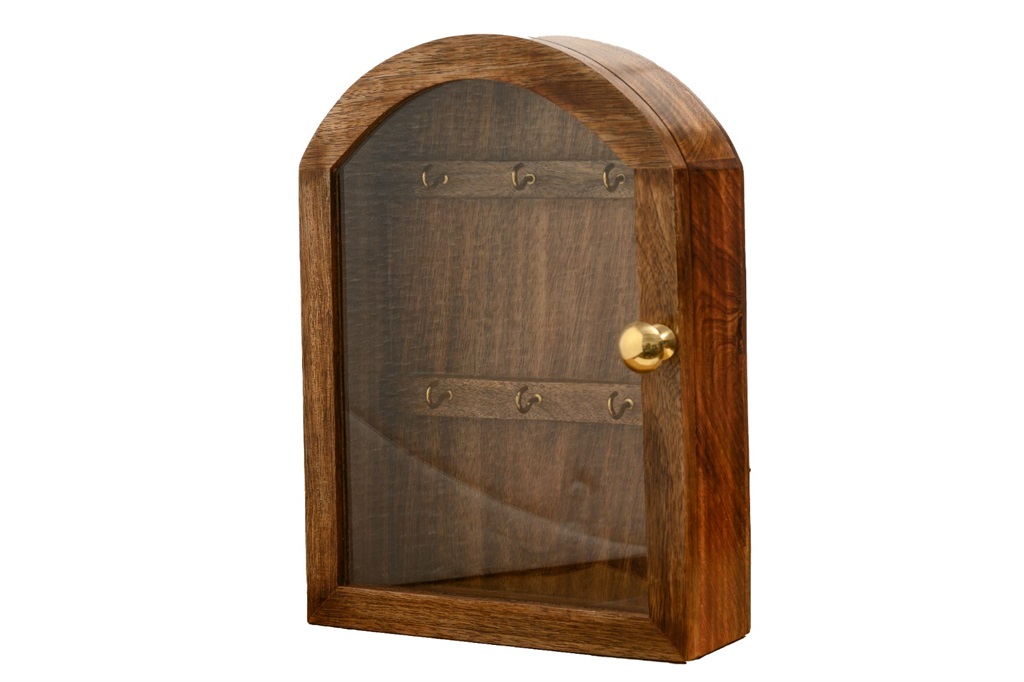 תיבת מפתחות מעץ עם דלת זכוכית